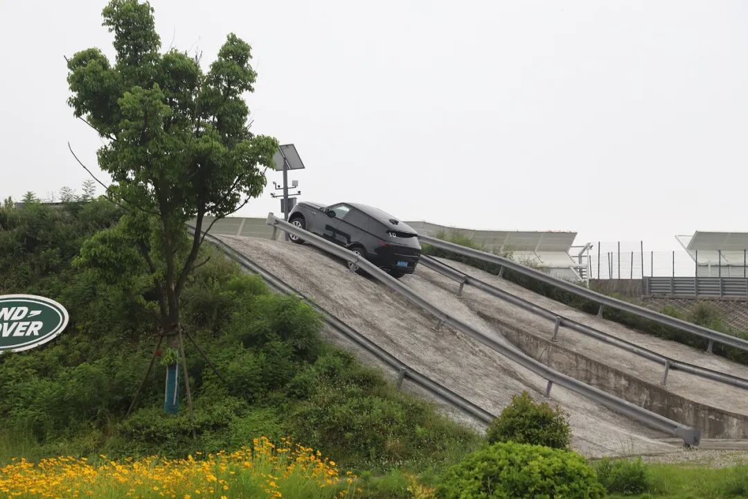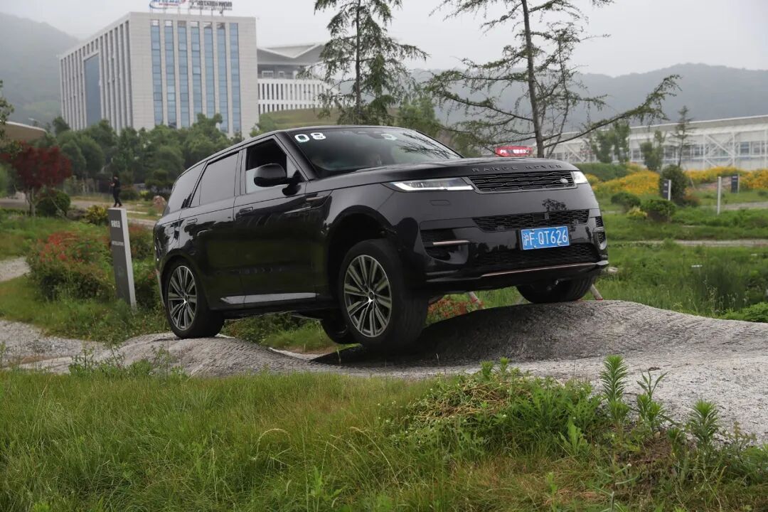 越野试驾场地设置有上坡+馒头包、30°坡道、交替边坡、台阶、岩石坡路、涉水等项目,揽胜运动版应对这些项目都非常轻松。底盘高度设置为越野之后,底盘高度会由标准的216mm提升至281mm,接近角、离去角和纵向通过角也分别提升至33.0°、30.0°和26.9°。