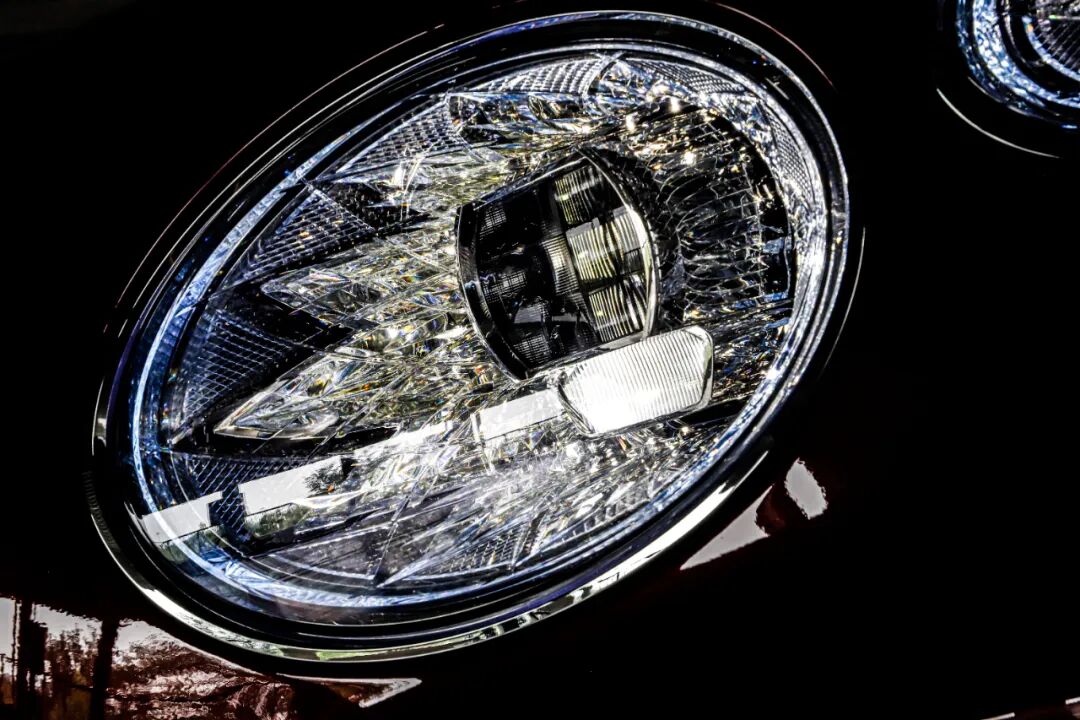 如同水晶艺术品的大灯组将豪华的氛围感直接拉满,家族的四眼样式能够让你一眼分辨出这是一台宾利车型,是标志亦是传承。在透镜的后方拥有82颗LED灯珠,在照明效果以及功能性方面更是无需多言。