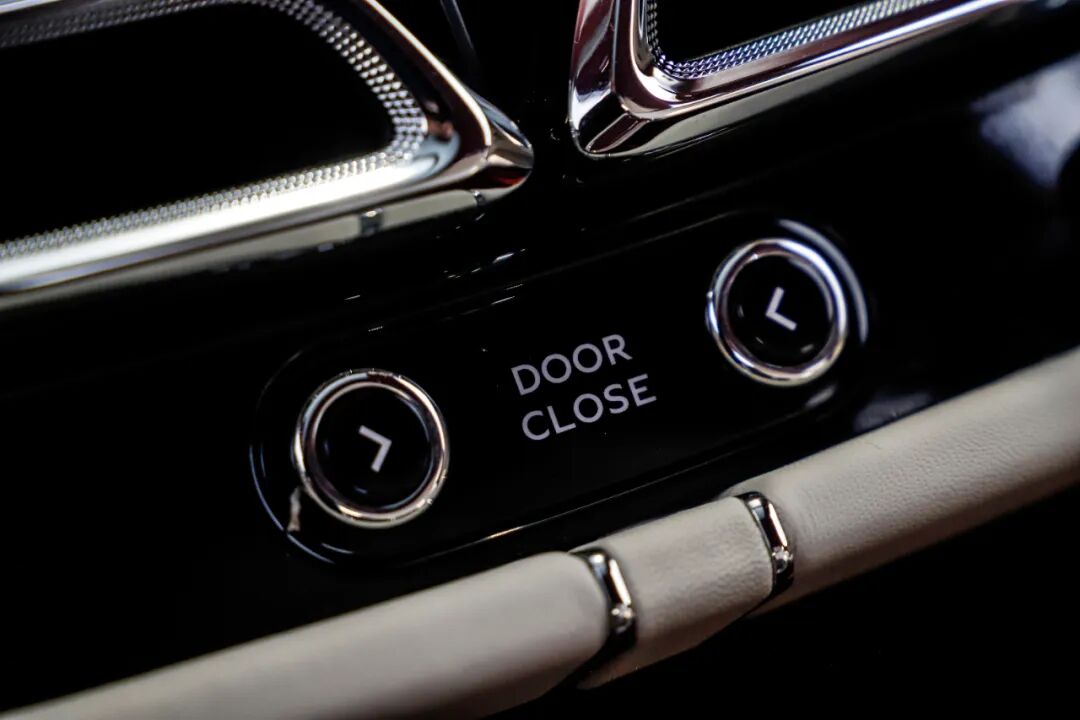 新添越长轴距雅度版车型是整个宾利车系首款引入电动关闭后车门的车型,两个控制按钮位于中控台后端面板。当长按其中一个按钮时,相应一侧的车门在电机的控制下实现关闭。不仅如此,手动轻推车门也可触发电机与电动自锁装置的相互协作,使得车门自动吸合直至完全关闭。电机也会在打开车门时提供平和舒缓的助力。