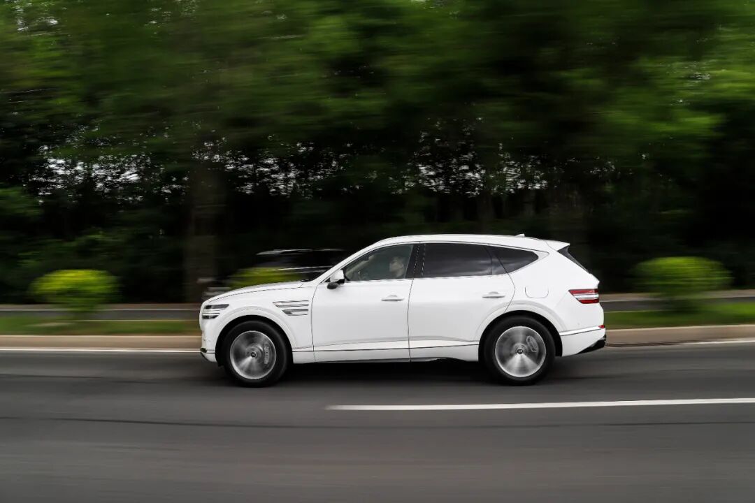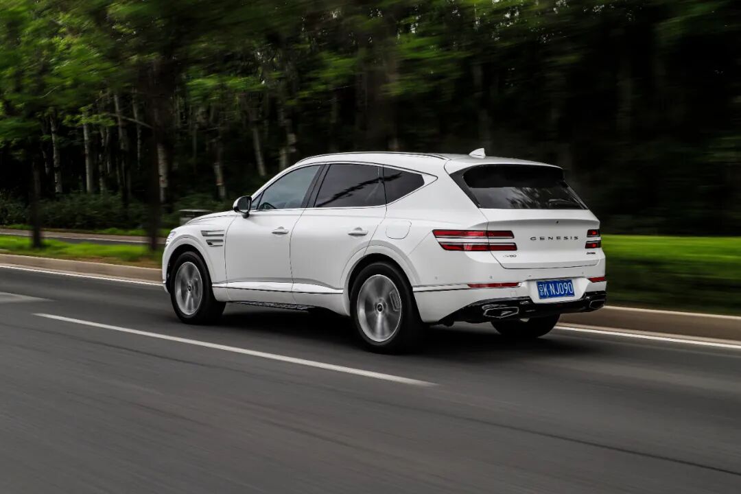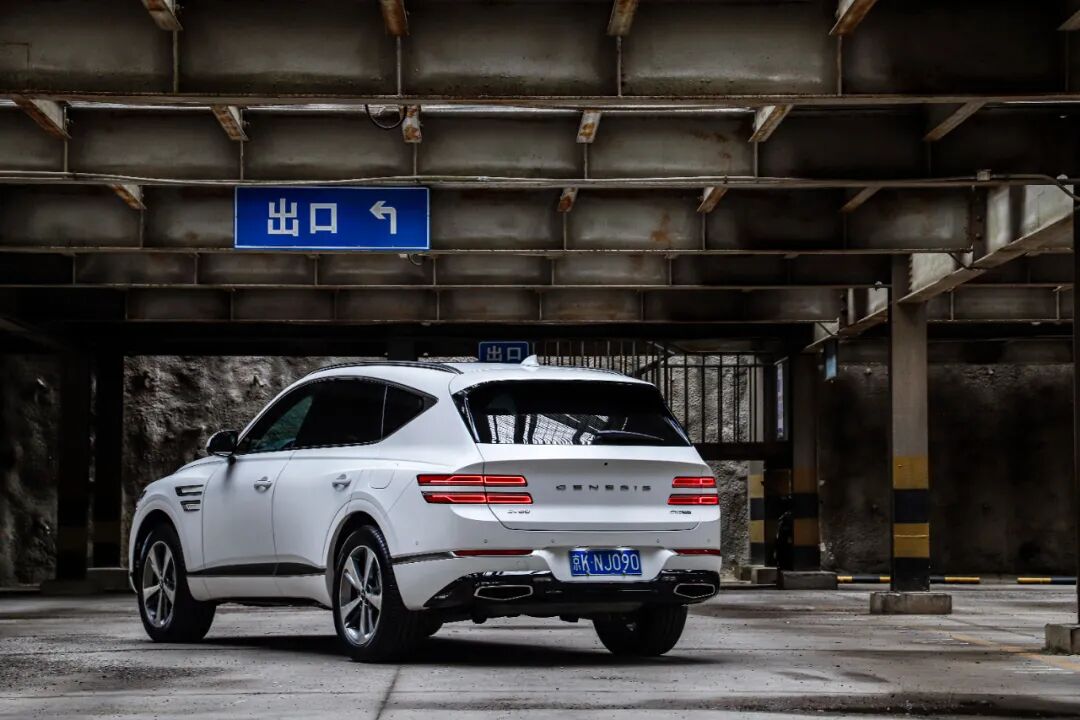 车身侧面造型大气且庄重,短前悬、长后悬以及纵置发动机布局都是捷尼赛思的招牌设计,这些因素融合在一起,也使整车有着较强的“后坐感”。车身尺寸方面,新车的长宽高分别为4945/1975/1725mm,轴距达到了2955mm,有着标准中大型SUV的身材。