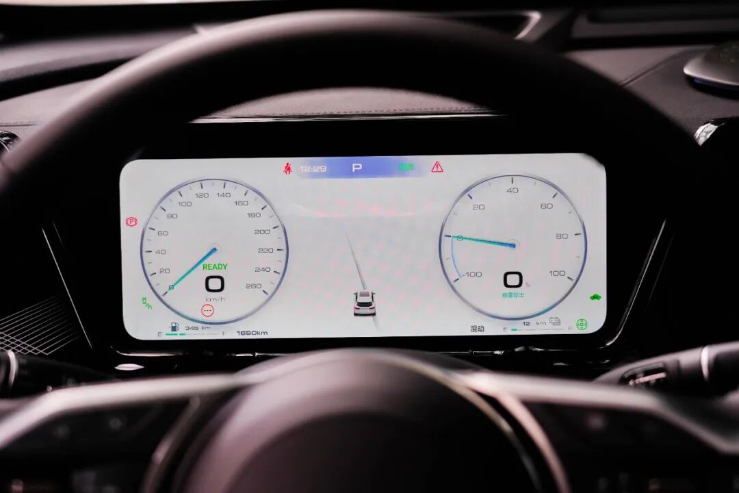 高速工况巡航时,发动机会介入工作,动作非常轻,仅在急加速发动机拉高转速时会察觉到其在做功。而2挡DHT此时也会发挥降低油耗的作用。馈电状态下,动力输出的质感也没有大打折扣。