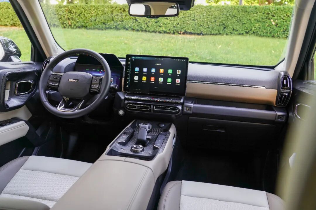 动力方面,二代大狗采用1.5T+2挡DHT变速箱的动力总成,总功率240kW,总扭矩530N·m。满油、满电工况下,综合续航里程超过1000公里。支持220V反向放电功能,放电功率达3.3kW,这点绝对是户外爱好者的心头好。