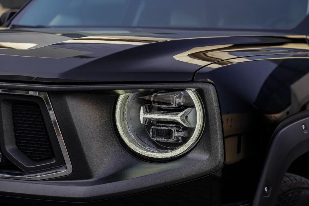 圆形大灯是我认为最有趣的点,造型足够复古,而内部的日行灯则形似骨头,难道这台车的眼里只有骨头?倒也挺符合大狗的车名。
