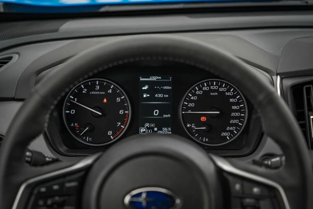当然,驾驶才是一台斯巴鲁的核心,方向盘采用真皮材质包裹,较粗的皮质纹理可以提供更好的摩擦力,多功能按键尺寸大且功能划分清晰,其背后还配备了换挡拨片。