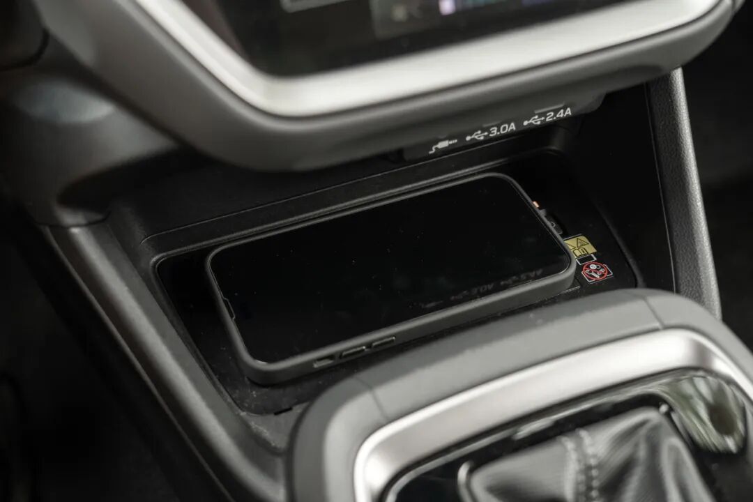 前排储物盒内支持手机无线充电功能,同时上方还配备3.5mm接口、Type-C与Type-A接口,还是十分丰富的。
