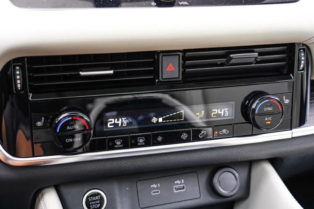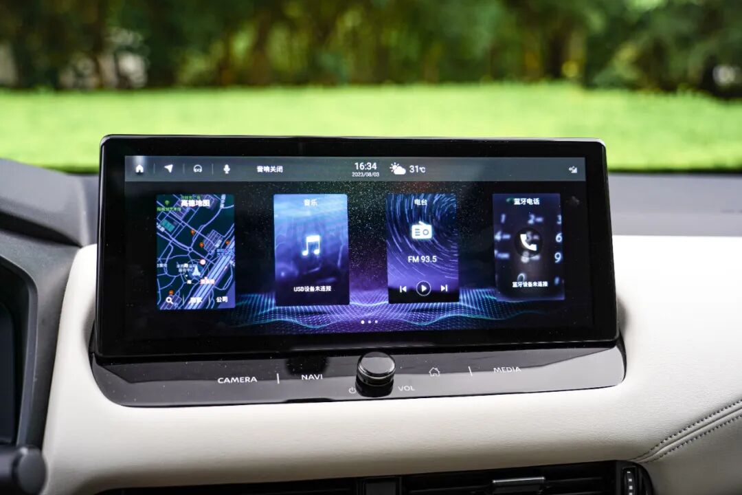 车辆信息和娱乐载体部分,逍客采用了“2+1”的布局,即双12.3英寸大屏+10.8英寸HUD。虽有大屏,但最为常用的功能控制区,逍客依旧保留了物理按键。