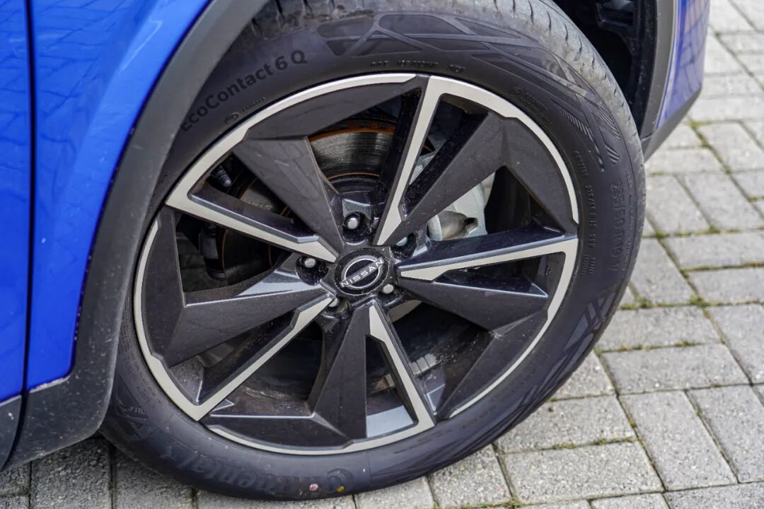 细节处,加入了双色车身,在轮圈、外后视镜等位置,均采用了熏黑处理,目的在于提升车辆的运动感。试驾车型匹配的轮胎为马牌EcoContact 6Q系列,尺寸为235/50 R19,主打静音与燃油经济性。