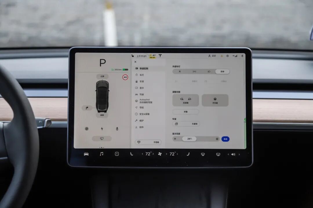15英寸的中控屏支持在线导航、在线音乐、爱奇艺在线播放等,多媒体系统功能很完善。车厢内的实体按键寥寥无几,无论是调节后视镜/方向盘还是打开空调/座椅加热都需要通过这块大屏来完成,存在一定的学习成本。此外,彻底取消仪表盘的设计,同样需要驾驶者逐渐来适应。