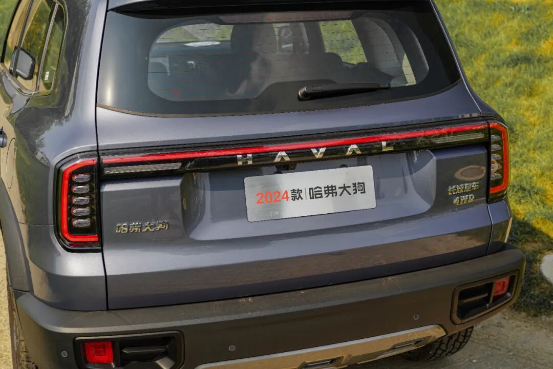 车尾的设计依旧充满野性,银色的下护板看起来很有战斗气息,同时,尾灯组算是哈弗大狗的标志性设计之一,点亮后有着相当高的辨识度。