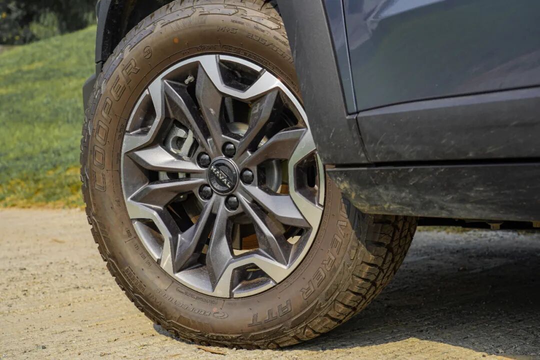 银色、枪灰色的双色花瓣式轮圈颜值不低,且与灰色车身很搭。轮胎部分,采用的自固铂的SUV系列DISCOVERER ATT系列,兼具耐磨静音以及粗糙路面的耐久性,具体尺寸为235/65 R18。