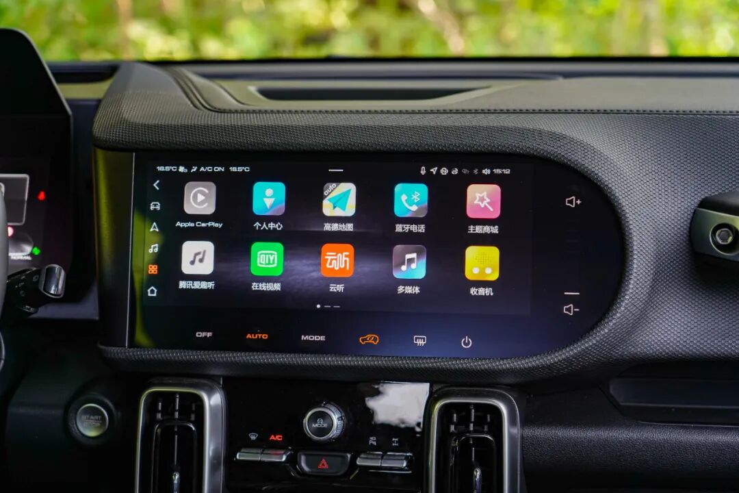 换挡机构为旋钮式,我个人认为有些与车型自身不搭,若能换成二代大狗一样的造型就更棒了,与坦克300同款。至于自动空调、无线充电面板在这款车型上也有配备,整体的便捷性表现值得肯定。