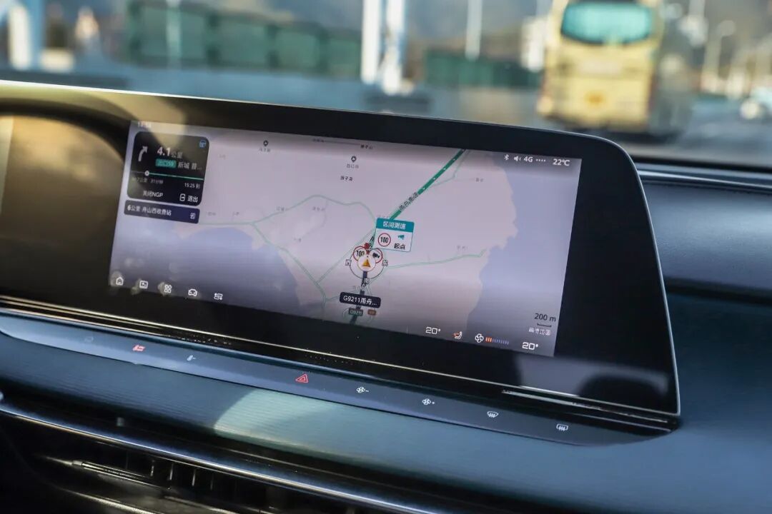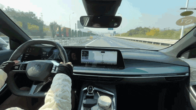 实际体验过程中,当前方遇到匝道车流汇入口时,车辆会提前向左侧车道并线,避免与匝道汇入车辆相遇而影响通行效率。前方有大车时感知设备会提前感知识别,在超越右侧慢车道大车的过程中,车辆会在行驶车道内向左侧避让以提升安全性。跟车行驶过程中,遇到快速并线插队的车辆,系统会及时识别并做出刹车避让行为。
