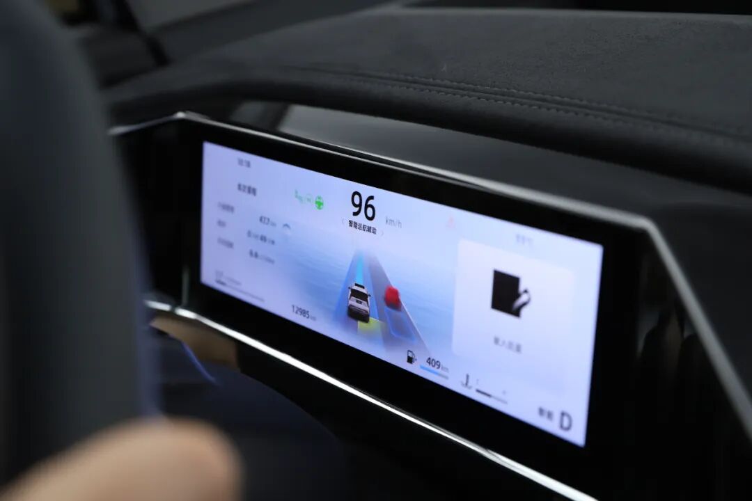 前方遇到慢车,车辆会自主变道超车,超车前系统会通过语音和屏幕提醒驾驶员,随后系统自动打转向灯进行变道,仪表盘和中控屏会显示超车动画。智能避让大车功能是当车辆以50-130km/h之间的速度超越大车时,车辆会在车道内向外侧偏移避让,完成超越之后自动恢复至车道居中行驶。
