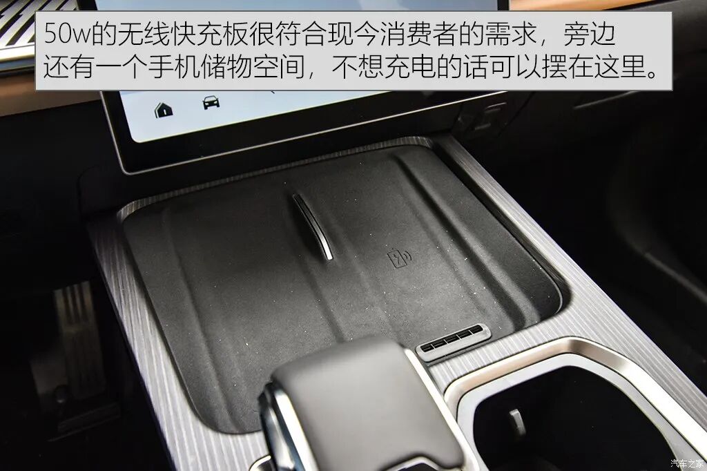 另外,这辆车的“手机充电”功能做的非常到位,车辆除了配备12V电源,USB,TYPE-C接口外,还带有50W的无线快充,相信手机重度使用者,应该不用担心手机的充电问题。