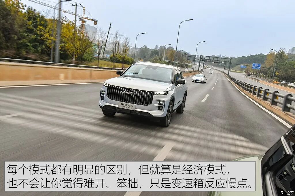 转向的感觉不是那种“贼灵敏”的手感,这种设定或许会让人觉得不是非常灵活,但是在高速公路上,操作起来会比较轻松(特别是长途行驶的场合),毕竟奇瑞强调,这款车是面向全球的,也会考量到国外高速公路速度较快、行驶时间较长的使用场景。底盘方面,车辆的底盘调校略偏硬,细碎的颠簸会稍微多一些,但这可能也是考量到高速稳定性所作出的调校。