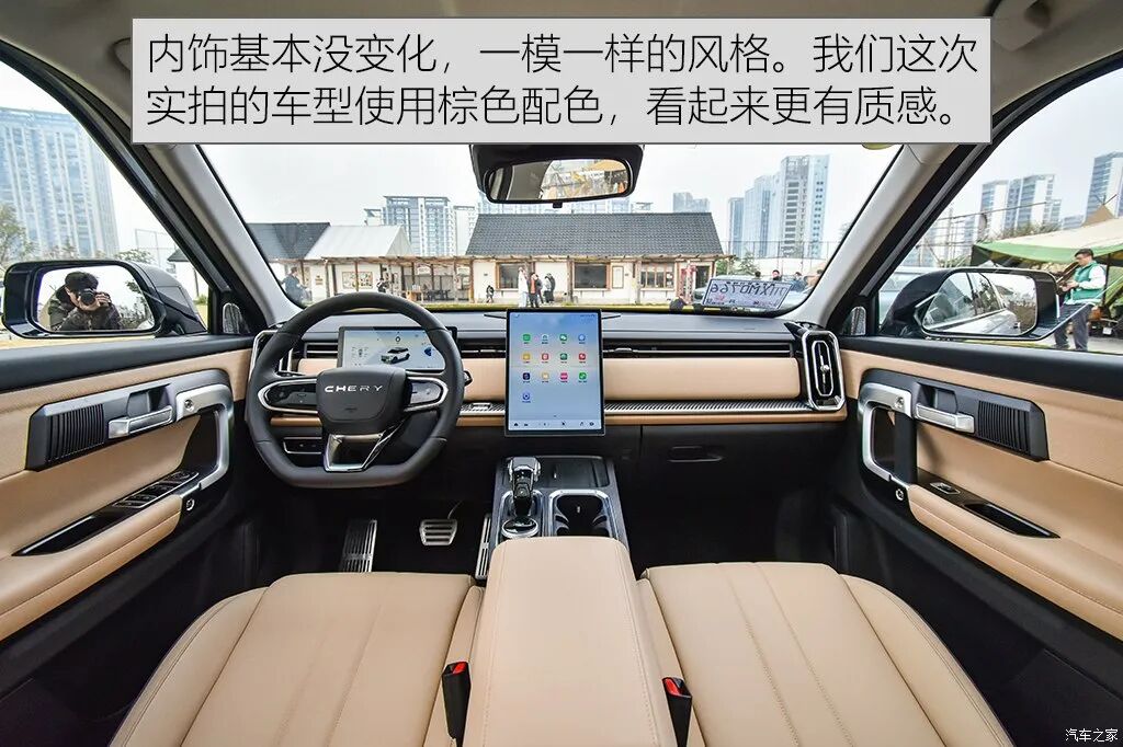 内饰和之前的车型没有太大的不同,都是这种直来直往的感觉。虽然线条比较硬朗,但是还是展现出国产品牌比较重视内饰设计的特色,可谓是刚中有柔,硬汉也有柔情。整体给人的感觉是比较精致以及富有科技感,如果你很久没有接触到“工科男”奇瑞的车型,忽然看到这辆车,你会惊觉这个变化也太大了。