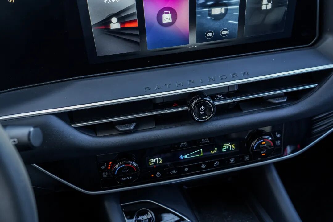 尾部造型饱满且层次感丰富,上方黑色的扰流板也带来了些许运动感。造型狭长的尾灯组略带犀利,同样由亮黑色饰板连接,与头灯组做法一致,下方PATHFINDER车型名称赫然抢眼。后包围依旧采用了大面积的亮黑色材质,目的就是为了提升精致感。外观对于一台主打家用的SUV来说,并非重点,车内才是。
