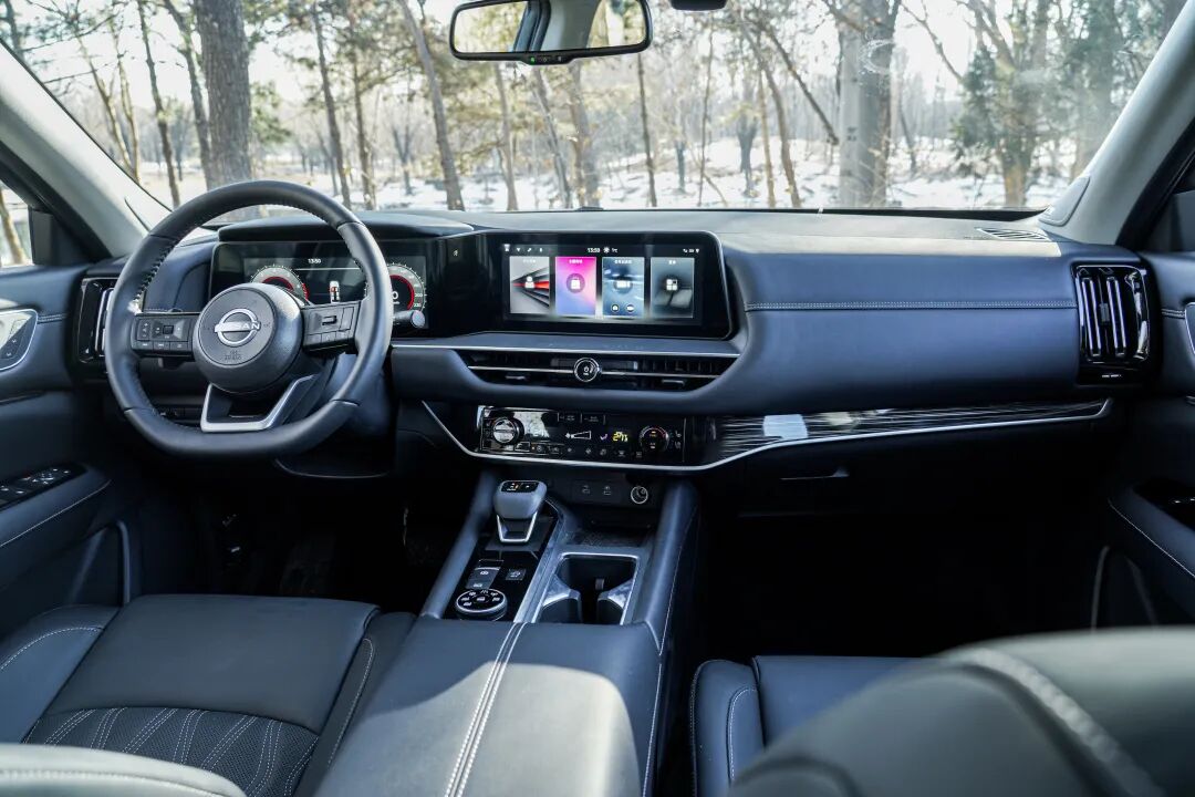 来到车内,很浓郁的日产风格,除了联屏外,其他元素都不陌生吧。作为日产国产的旗舰车型,用料上自然不必担心,能软包的位置绝不吝啬,整体拥有一定的豪华感。而联屏的加入,使其科技氛围得到了很好的展现。还有一点很重要,探陆内饰所有位置的皮质饰板全部是环保材料,新车没有任何的异味,这对于家用来说真是上大分了。安全气囊数量也值得称赞,全系标配9个。