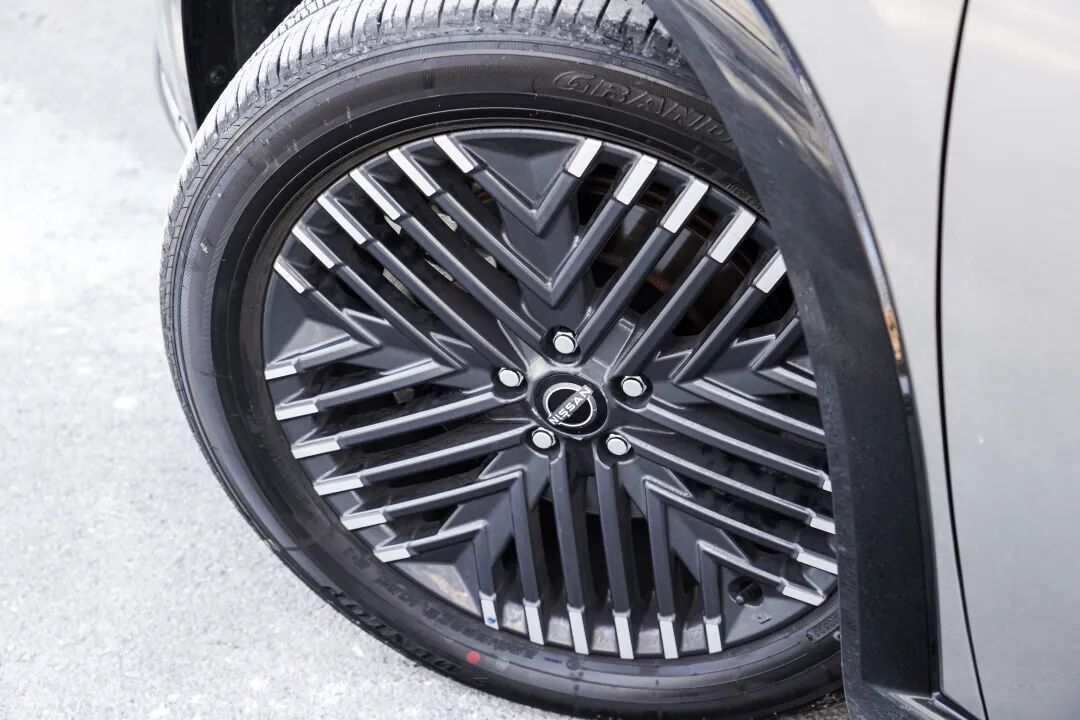 轮圈样式有“显眼包”的嫌疑,好看与否因人而异,试驾车型采用的是邓禄普GRANDTREK PT22系列轮胎,具体规格为255/50 R20。