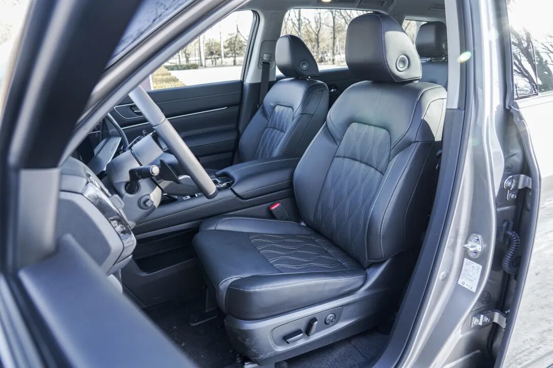 探陆的前排座椅宽大填充物柔软,对身体承托性很好,不负沙发厂之名,加热、通风也安排到位,整体舒适性没得说。
