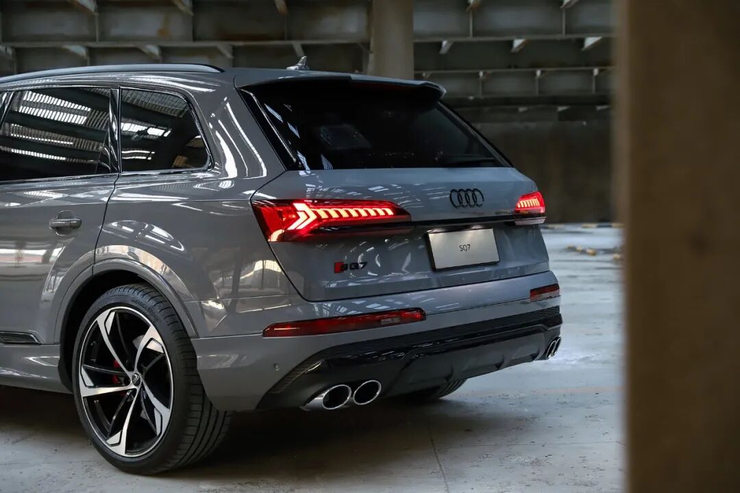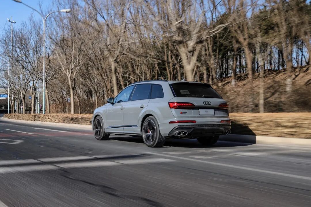 尾标也被黑化,SQ7标识直接点题,告诉别人它并不好招惹。双边共四出排气以及S家族标志性的后扩散器将运动感提升到新层次。