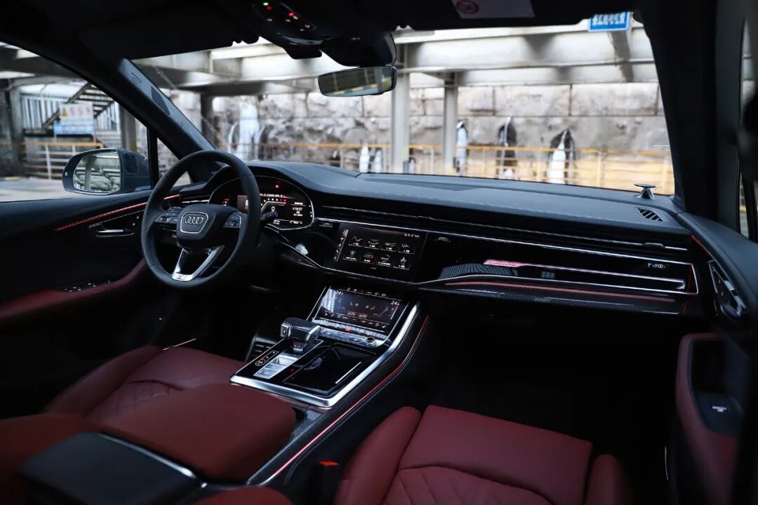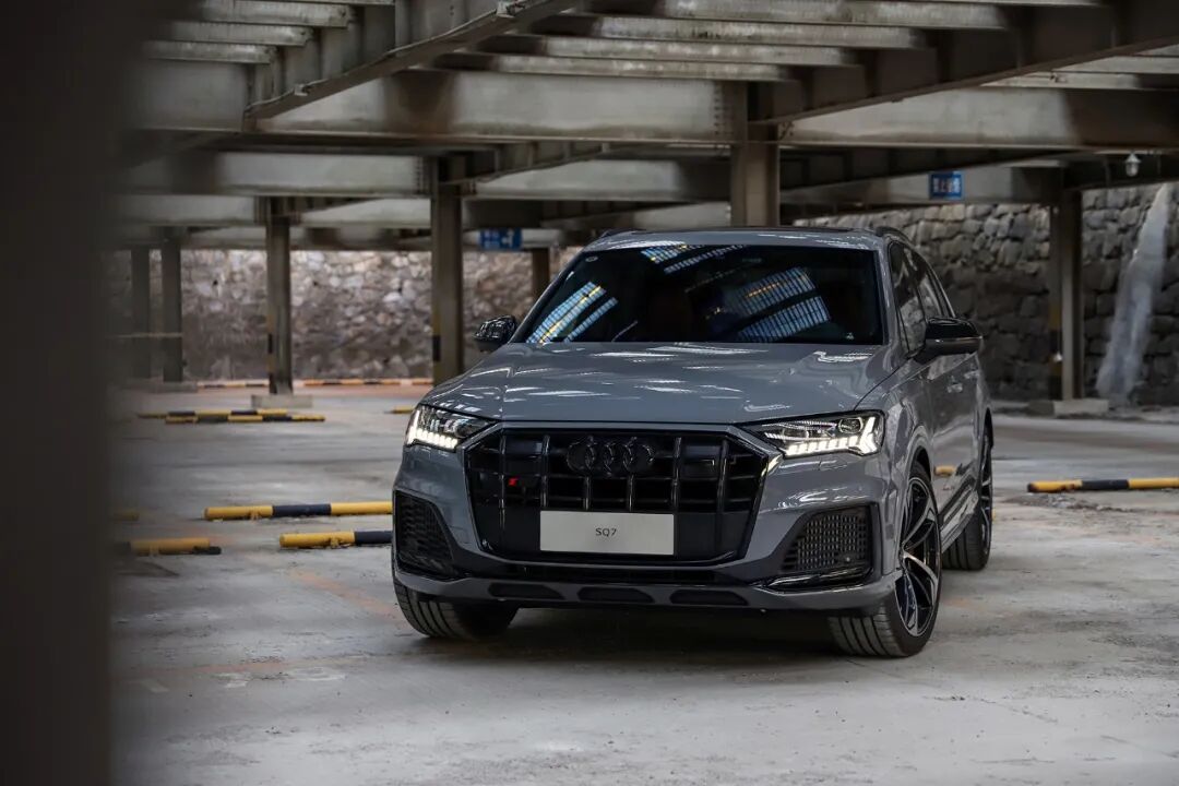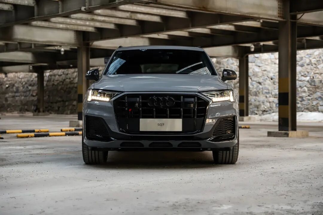 奥迪SQ7的造型设计大家都不陌生,基于奥迪Q7打造而来,但作为强调性能的奥迪SQ7暗夜骑士版必须得有彰显身份的专属设计,专属碳纤维风格包和外饰拓展黑光包安排上,再配合“纳多灰”专属车漆,时尚运动感拉满。硕大的进气格栅采用亮黑配色,内部的纵向饰条更添一丝凶狠,SQ7标识是绝对的点睛之笔。