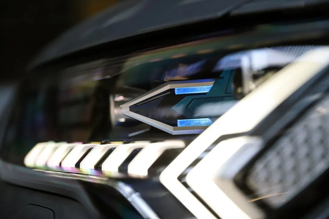 高清矩阵式LED头灯造型锐利且带有激光远光模组,日行灯、自适应远近光、转向头灯、雨雾模式、大灯清洗装置等都没缺席。