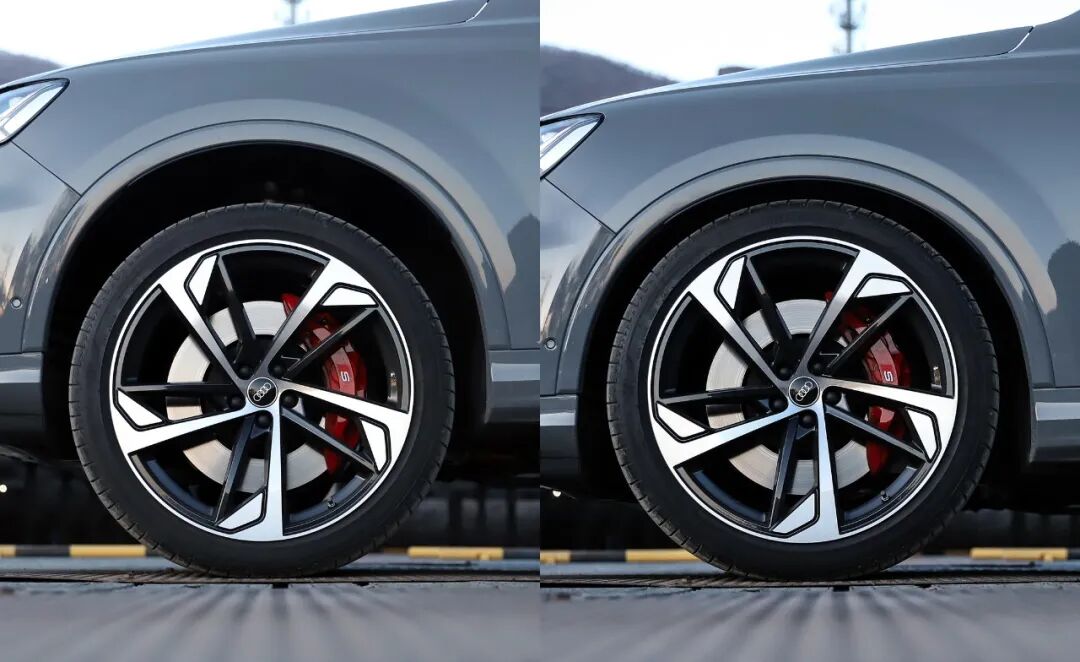 奥迪SQ7转向手感低速时比较轻盈,速度提升之后阻尼增加,方向盘仅在中心位置有一点点虚位,转过之后指向非常精准而且车头也很听话。四轮转向系统削弱了这台中大型SUV的大车感,低速时后轮与前轮反向转动有效提升灵活性,高速时前后车轮同向转动,减少了车身横摆,令并线更稳定顺滑。