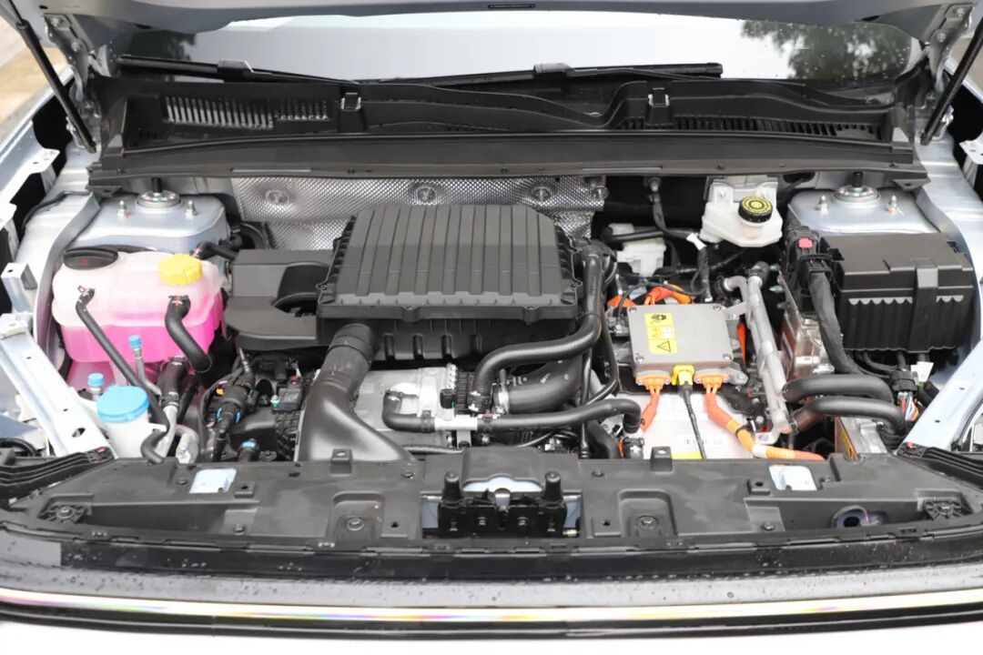 例如低速行驶采用串联驱动形式,发动机充当增程器,由电动机驱动;遇到急加速工况时切换并联模式,发动机和电动机协同发力;进入高速匀速续航状态下,发动机直驱的工作效率更高,驱动车辆的同时,还可为电池充电。油电切换时的噪音和振动抑制不错,不扰人。风云T6的WLTC馈电油耗为4.9L/100km。
