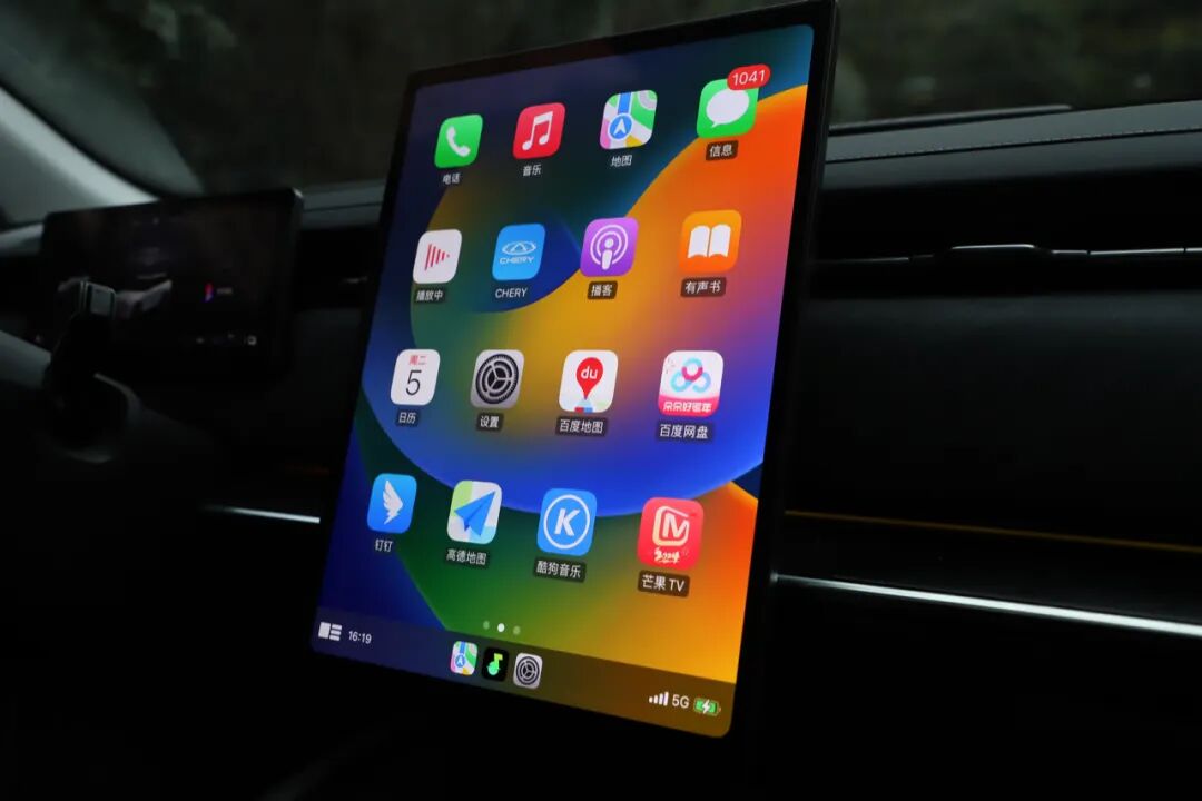 14.8英寸的悬浮式液晶屏占据整个中控区域,车机内置8155芯片,显示效果和流畅度都挑不出问题,并且还支持竖版全屏CarPlay,好评!