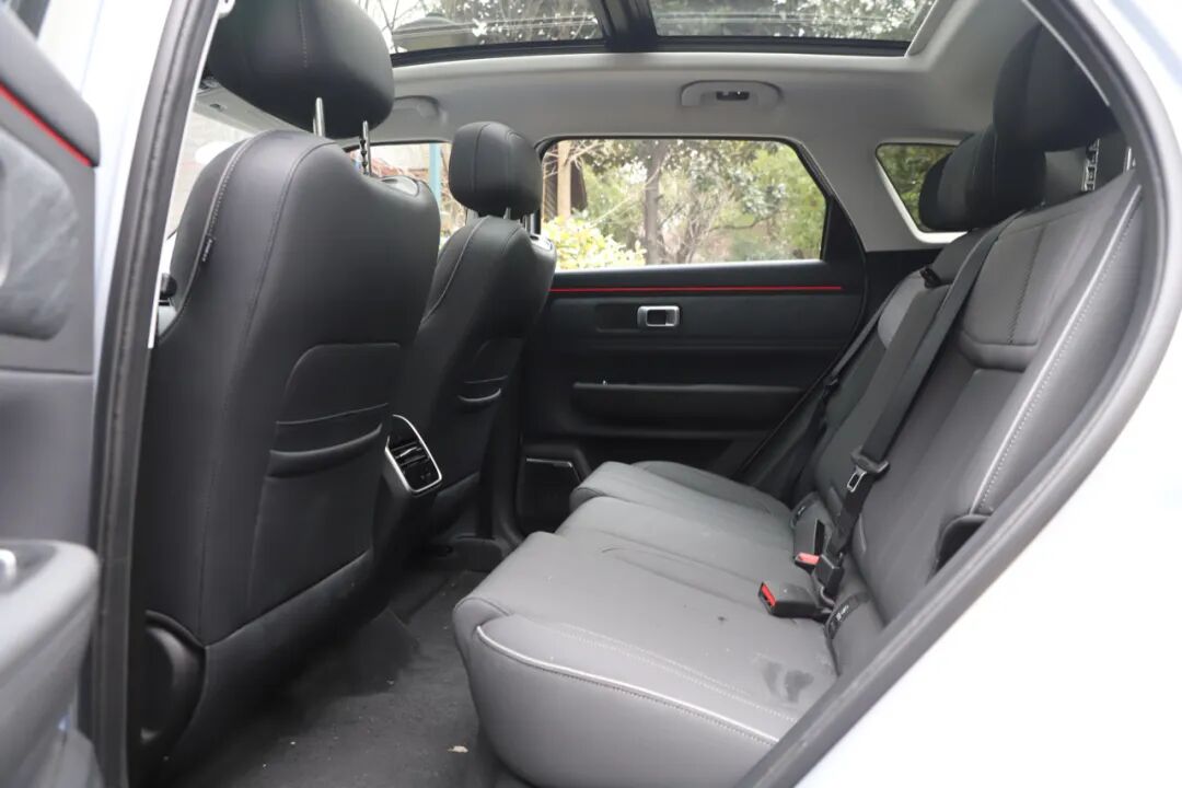 后排座椅的舒适度同样可圈可点,靠背和坐垫角度合适,坐垫对大腿承托到位,坐姿自然放松。美中不足的是,安全带卡扣全部裸露在外,稍显凌乱。