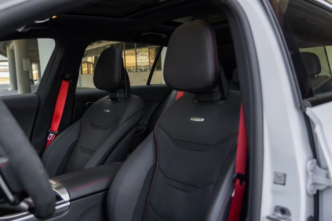 新车并没有提供AMG高性能运动座椅,但标配的运动型座椅完全够用了,有着漂亮的红色安全带,侧向支撑力足够令人满意,背部也不会觉得太硬,可调节的头枕更是加分太多,如果普通C级能选装这个那就太好了。