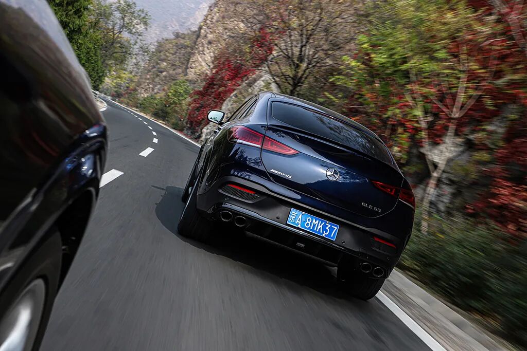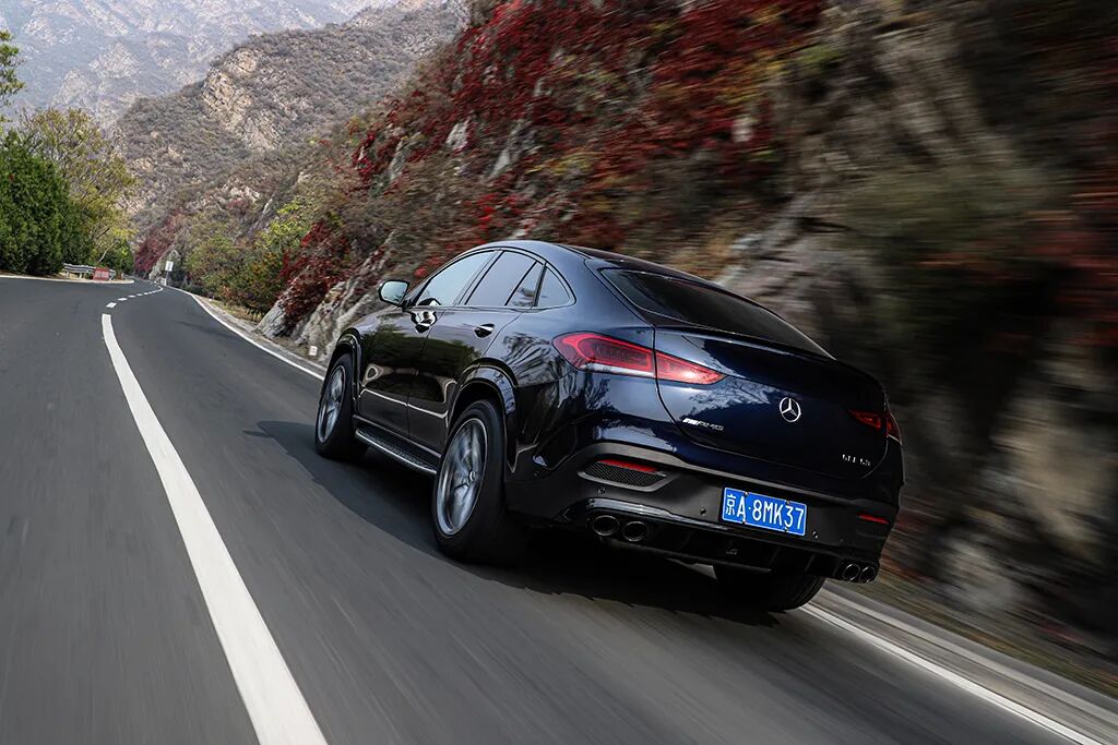 驶入山路,GLE 53难以掩盖2.3吨的车重,显得不够从容,在经过连续弯道,发生连续重心转移时,GLE 53不免会产生较大幅度的侧倾,车头重量难以隐藏。好在发动机和变速箱的配合足够默契,扭矩由四驱系统果断传递至车轮上,让GLE 53在出弯时可以尽早摆脱惯性和离心力的纠缠。