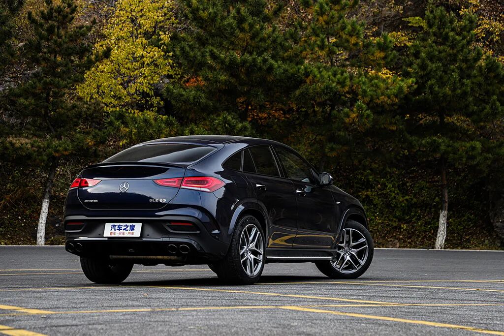 车尾45度或许是这款车的最美角度,车顶线条从后备厢盖上方收起,与“小鸭尾”完美融合。尾灯造型是轿跑版彰显个性的重要身份标识,双边共四出的圆形排气,则是AMG GLE 53系列的专属样式。