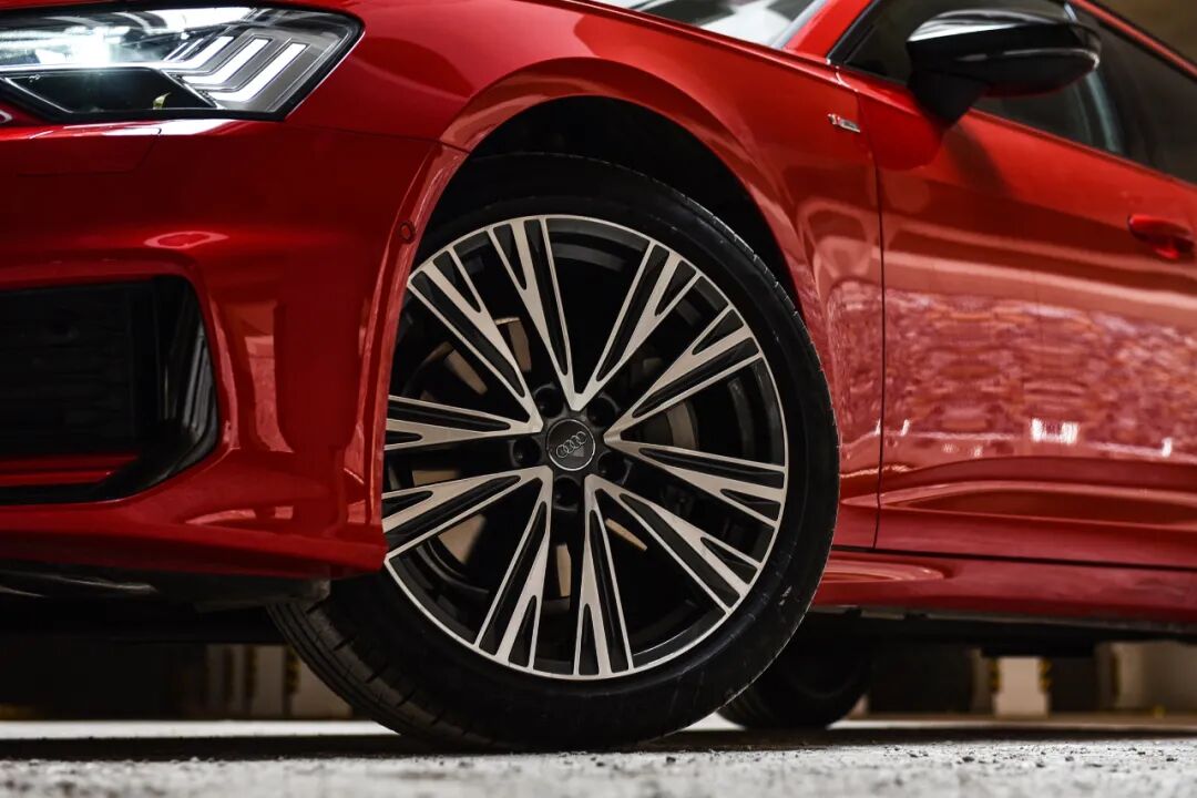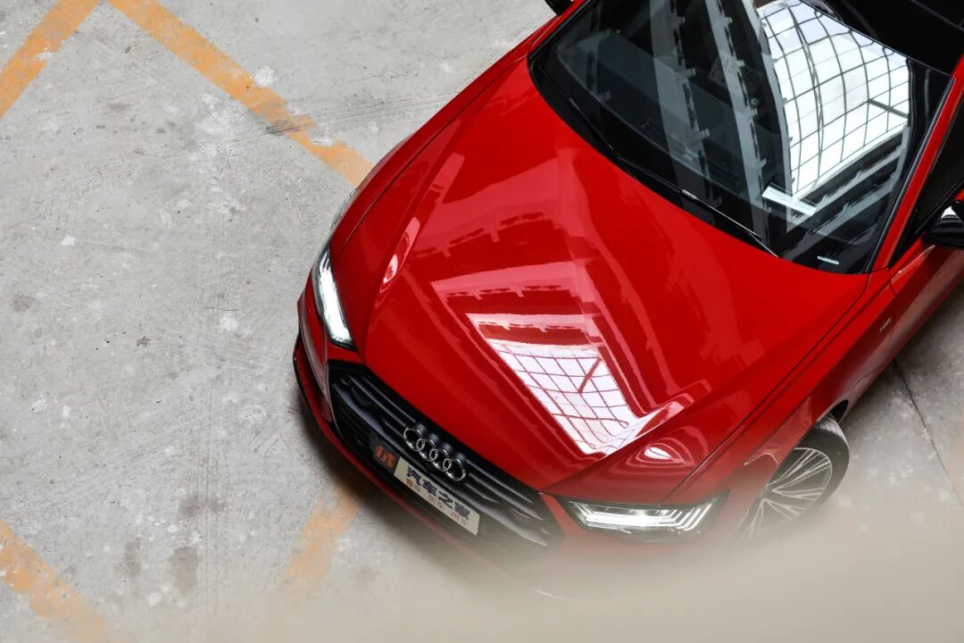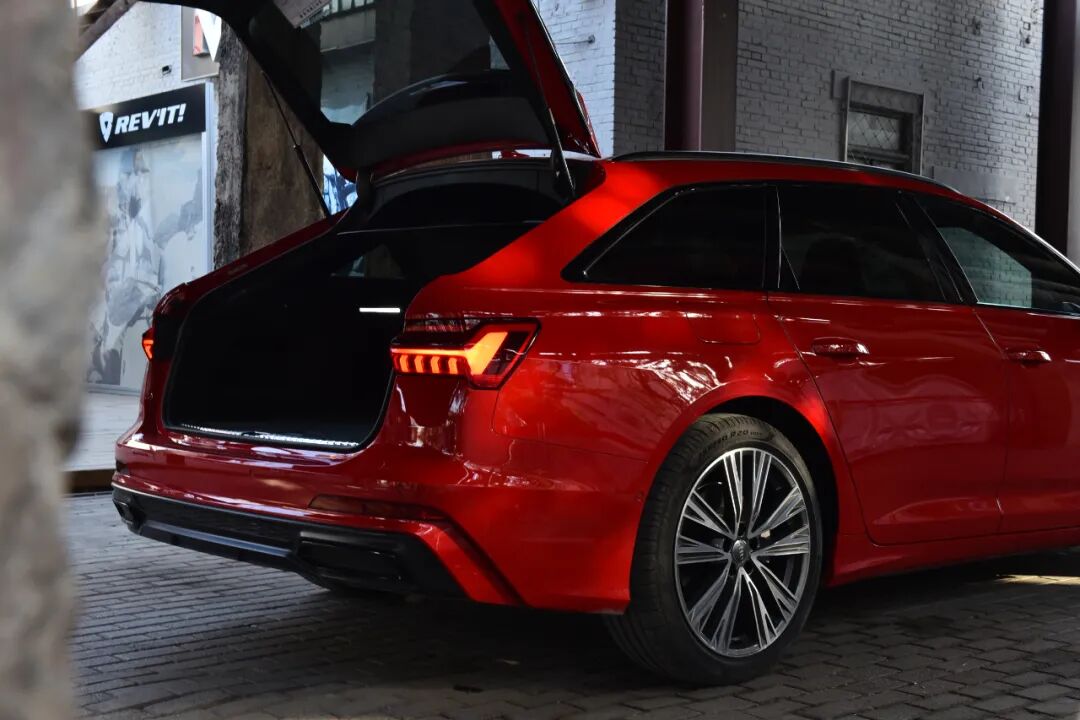 探戈红的车漆颜色在这台A6 Avant上显得格外耀眼,但并不俗气。这台试驾车虽然拥有S line外观套件,但还选装了黑光包、黑色外后视镜和黑色行李架,其中黑光包将中网、前包围、车尾贯穿装饰和后包围等位置全部更换为了亮黑色的装饰,与红色车漆搭配别有一番滋味。