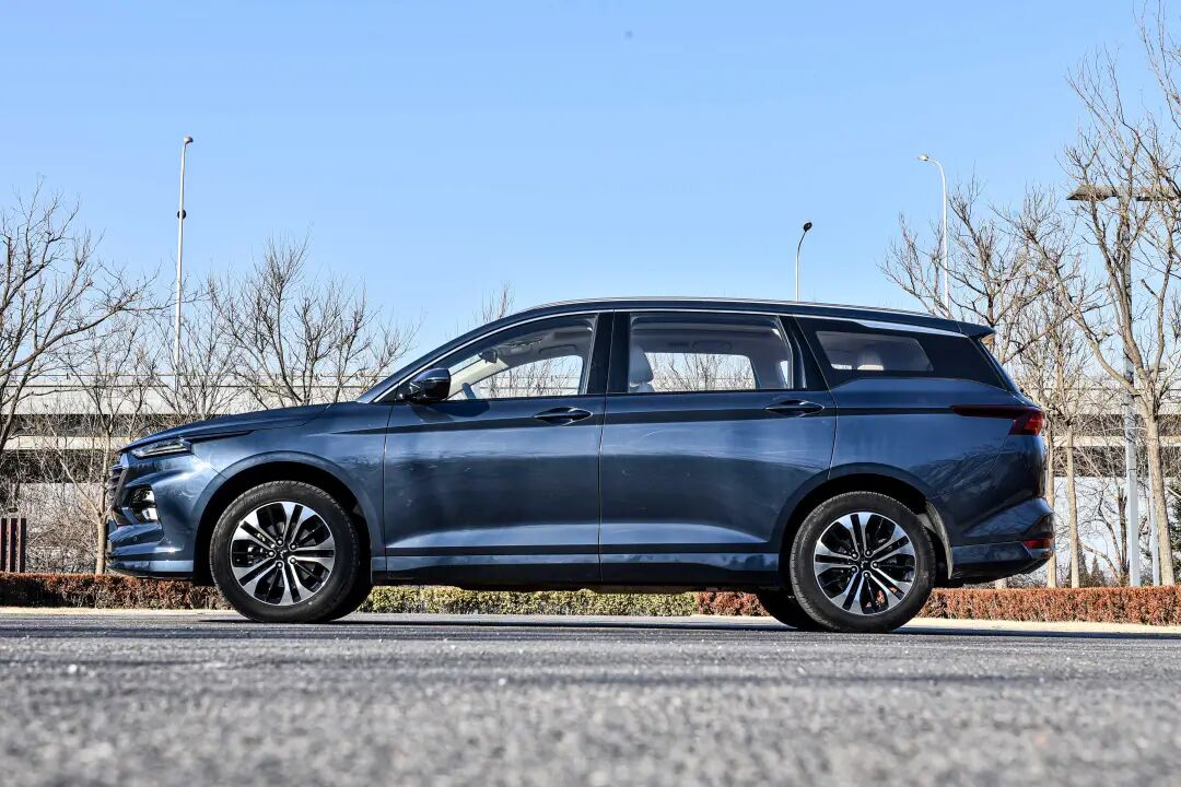 来到车身侧面,五菱凯捷的长宽高分别为4875/1880/1700mm,轴距为2800mm。值得一提的是,隐藏式的B/C/D柱设计也是这台车侧面的一个亮点,悬浮式车顶的视觉效果也是现在较为流行的样式,年轻化氛围浓郁。