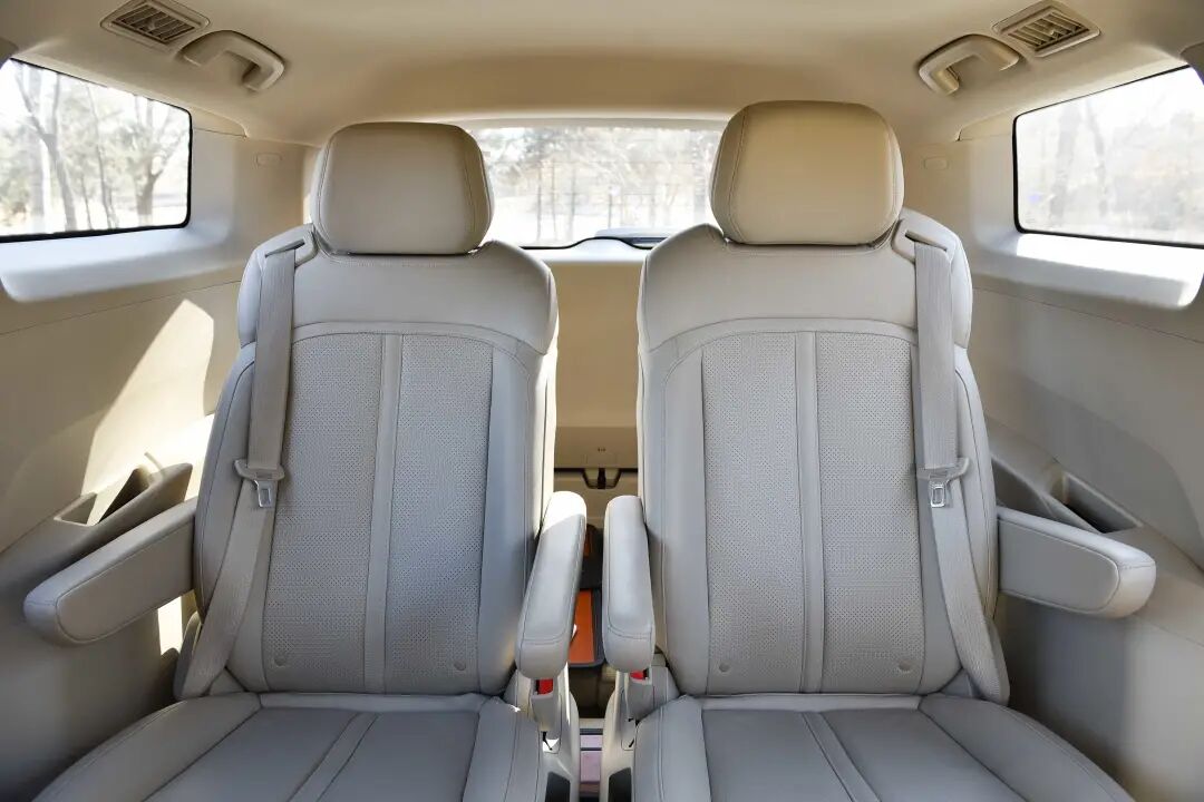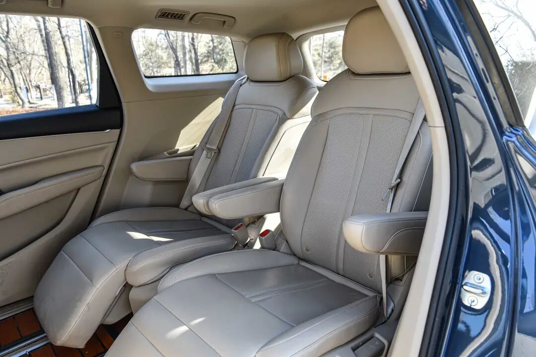 第二排是五菱凯捷的拿手好戏,第二排两个独立座椅拥有72°开合角腿拖,同时支持前后560mm,左右160mm的滑动以及纯平放倒。第三排座椅放倒后可隐藏在地台下方,形成一个纯平的空间,实用性极高,拥有非常灵活的车内布局。