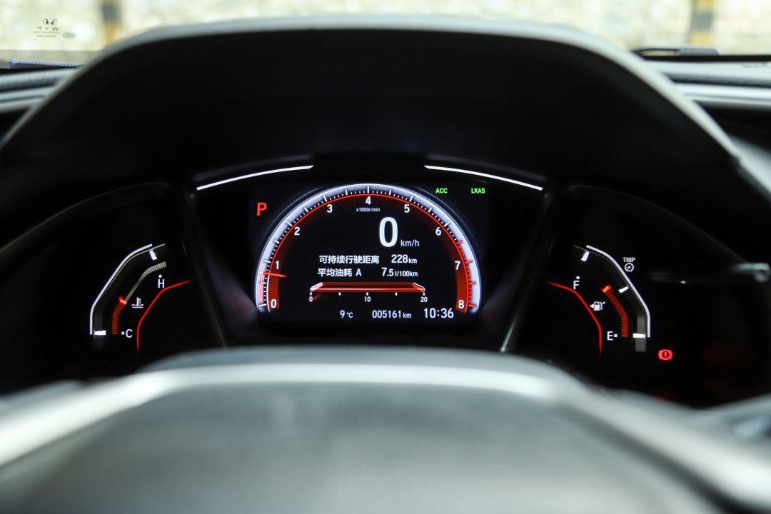 可变转向比减少了低速行驶时的方向盘转动幅度,让掉头轻松不少。转向指向性依然很高,和三厢车型相比,没有“屁股”的两厢思域车尾更为活跃,穿梭在行驶的车流之中,干脆漂亮地完成并线动作。