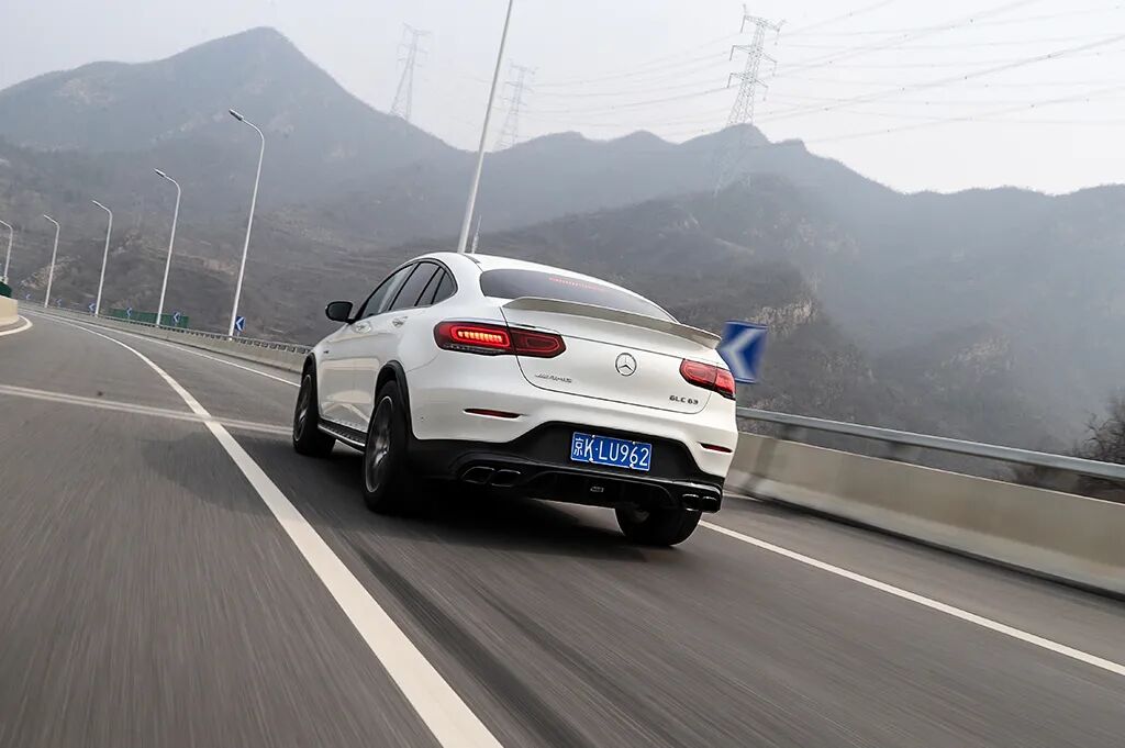 如果用一只动物形容这台GLC 63轿跑,我更喜欢将它比喻成犬科动物而不是相对敏感的猫科动物。虽然GLC 63车系标配电子后桥差速锁,这样可以减少转弯时内侧后轮打滑,让驾驶员更早驶出弯道,但底盘质感还是没有到达我期望的紧绷值,甚至车身整体性也不像一台尺寸不大的中型轿跑SUV,这样看用它来跑山确实有些格格不入。