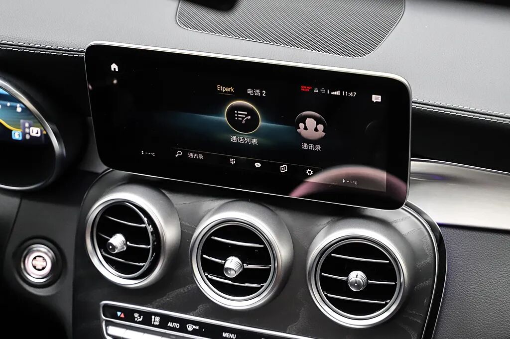 未完成换代的奔驰GLC内饰稍显老旧,没有选装AMG碳纤维饰板在遮住AMG标识后好像失去了灵魂。