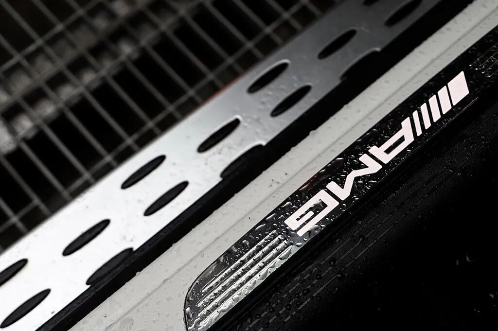 出于好奇我们查阅了尺寸参数来一探究竟:在三台车轴距同为2873mm的前提下,63车型的车长更长、高度更低,宽度也要比普通版宽32mm,这也就不难解释那种咄咄逼人的气势了。