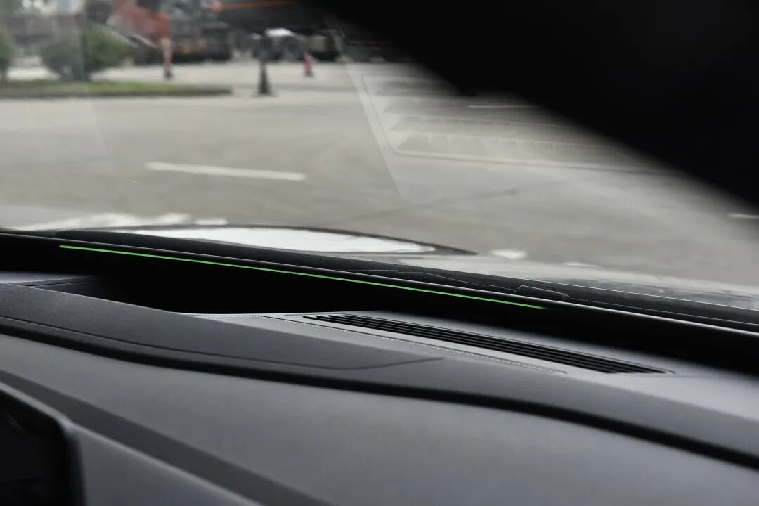 在科技化的道路上,ID.4 CROZZ做到了“秀外慧中”,除了刚才介绍到的IQ. Light,车内的智能配备更为丰富。首先是下图中的ID. Light智能交互呼吸灯,该灯带位于前挡风玻璃与中控台之间,可根据不同的场景切换不同的颜色以及动态效果。举个例子,呼唤语音系统时,会以白色灯带闪烁的方式呈现;进行车辆导航时,如遇前方转弯,会以蓝色灯带划过的样式呈现;车辆充电时,会以绿色堆积样式的灯带展现。