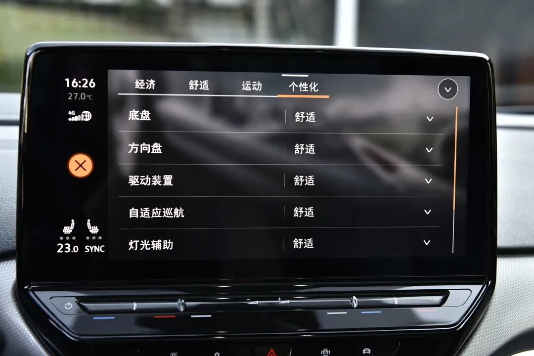 此外,新车支持经济、舒适、运动以及个性化四种驾驶模式,驾驶员也可以根据喜好进行具体项目的自定义。