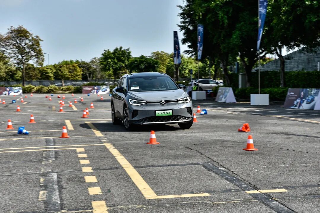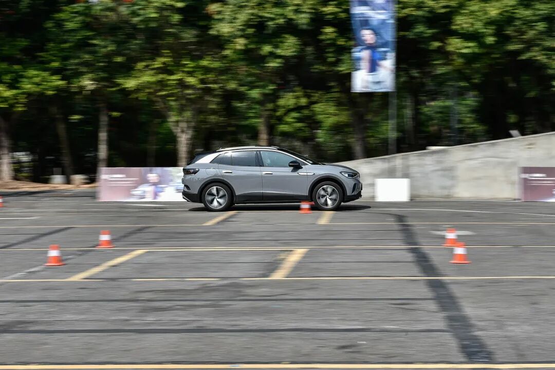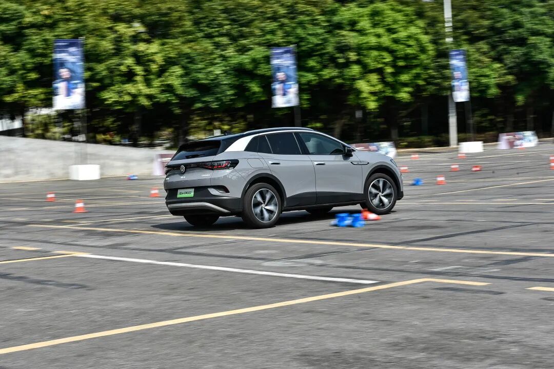 除了道路试驾,本次活动还有简单的场地科目体验,而ID.4 CROZZ则表现出了不同于日常驾驶的灵活性。它的车重接近2.2吨,再加上SUV的车型定位,在绕桩以及快速攻弯时都能察觉到比较明显的重心转移,不过好在悬架的后段韧劲儿十足,强有力的支撑能给予驾驶员很强的自信。
