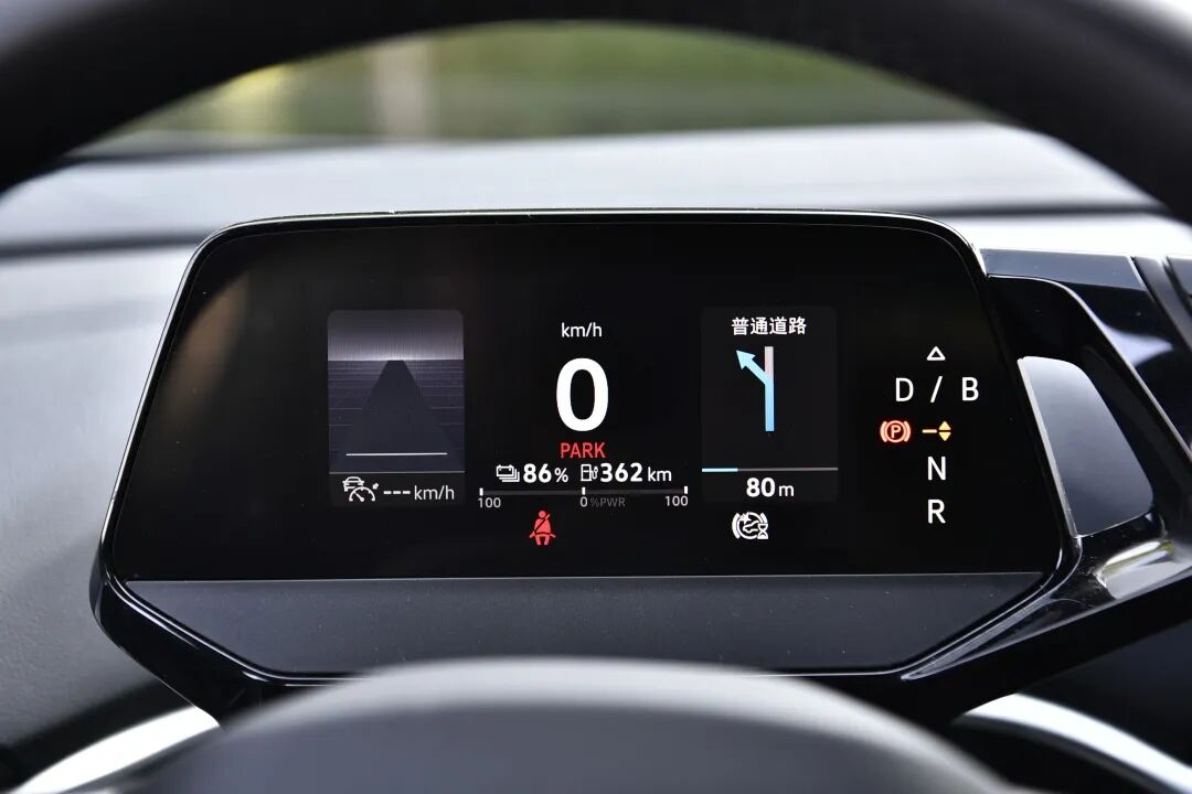 如果您刚才仔细观察了ID.4 CROZZ的挡把,会发现上面有D/B两种动力设定,其中B挡模式为强动能回收模式,力度的释放线性且易于掌握,日常驾驶时可通过较强的减速力实现单踏板模式行驶,且对使用场景没有限制;D挡则为常规挡位,动能回收力度减弱,抬起电门踏板后减速效果不会很明显。