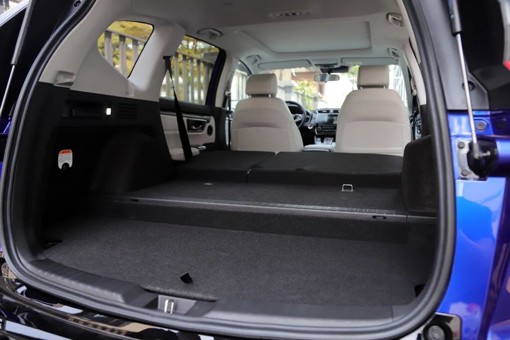 不过,有些事情也是本田这样的“空间魔术师”没法搞定的,比如,如何在尺寸有限的车身里塞进一块巨大的动力电池,同时还不影响车内空间?在放倒后排座椅后,插电混动版CR-V后备厢里的几个“台阶”十分扎眼。