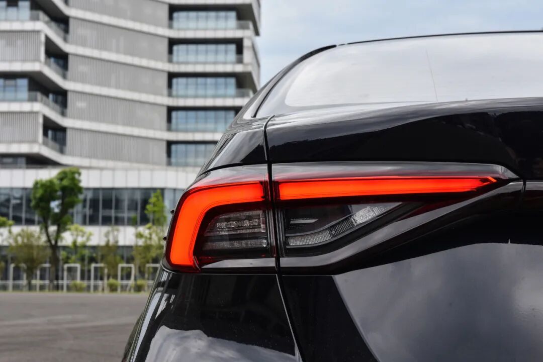 尾部整体还是以卡罗拉为样本,而在细节之处却又有着与亚洲龙更近似的设计。两侧灯组被镀铬装饰相连,中间辅以品牌“字母”,很有亚洲龙的既视感。另外,灯罩进行了熏黑处理,还是比较耐看的。