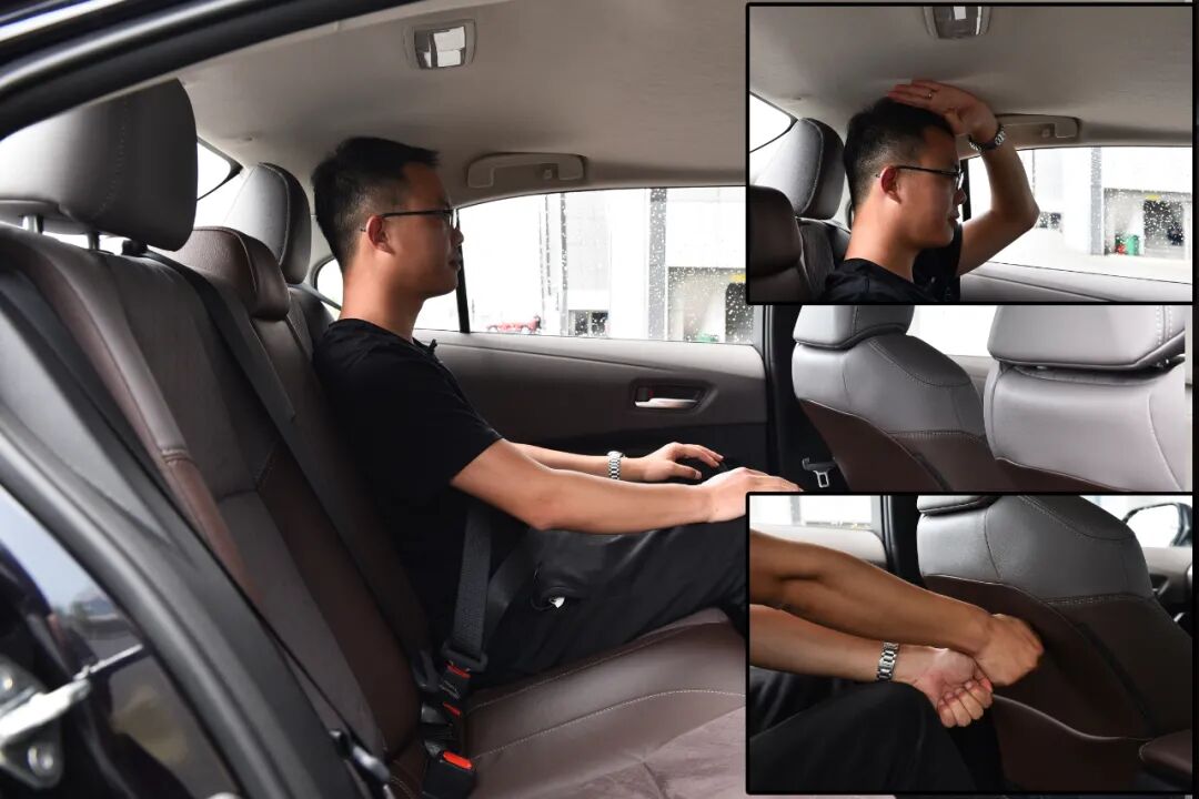 身高178cm的体验者进入前排,并将座椅位置调至最低,此时的头部空间为一拳左右,处于正常水平。