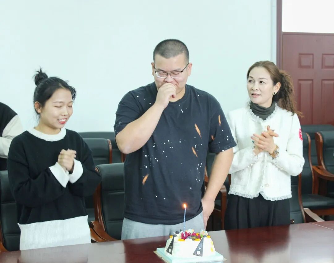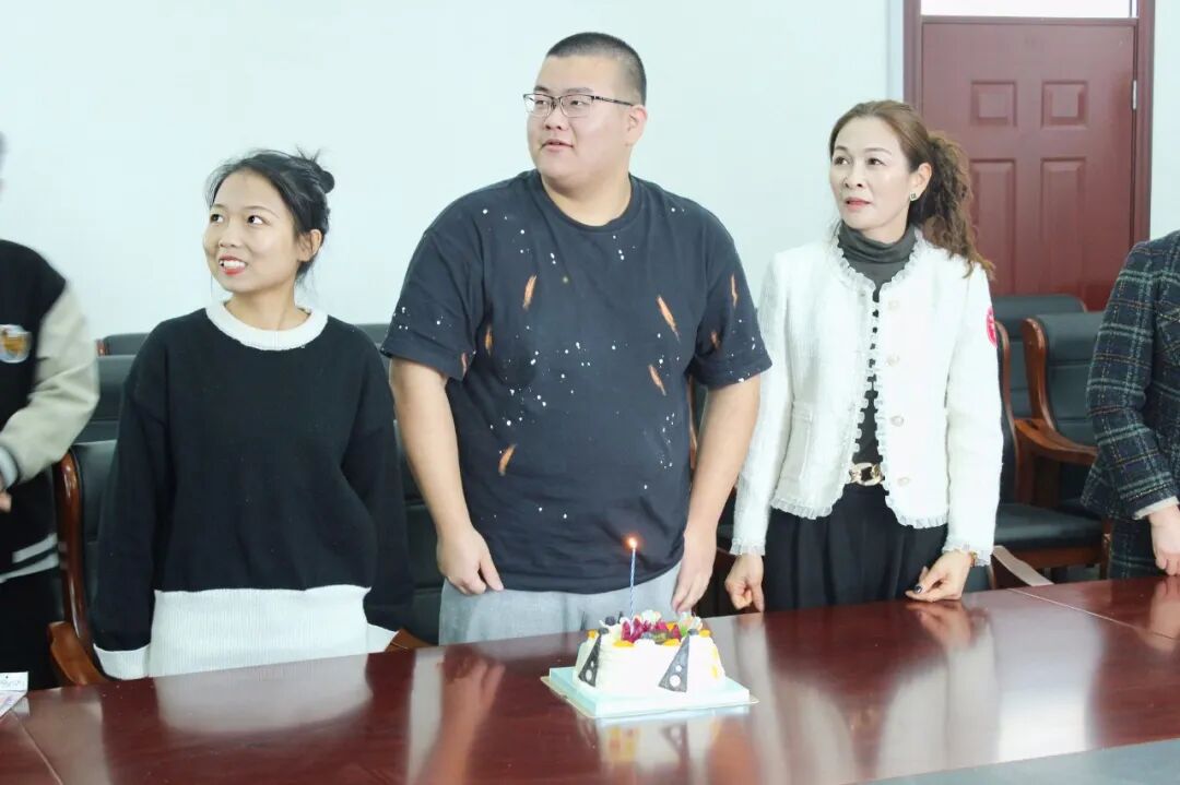 随着祝福音乐的响起,家长、班主任、志愿者学生与22机电五班杜嘉豪一起唱起生日快乐歌。此次“家长学校”活动日恰逢杜嘉豪18岁生日,学院贴心准备了蛋糕。杜嘉豪妈妈表示很惊喜,也非常感谢学院的安排。
