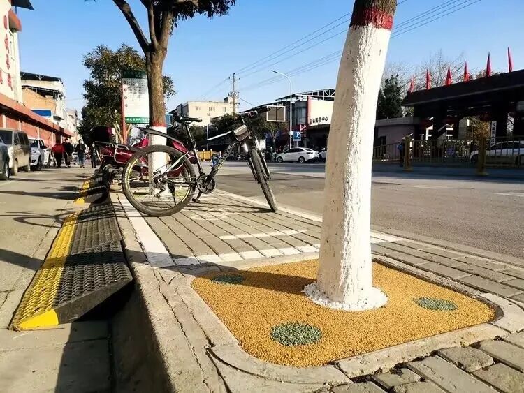 22机械团支部王嘉辉说:“我的家乡泾阳,街头的行道树圈红刷白,原本裸露的泥土被铺上了一层彩色的“地毯”,如同柏油路面一样,被压的十分平整,配以造型各异的图案,让泾阳更加多姿多彩,经过长时间的变化,使得我的家乡更加美丽。”